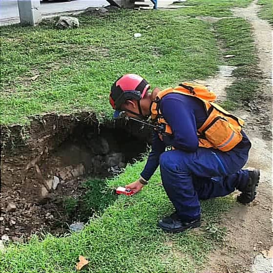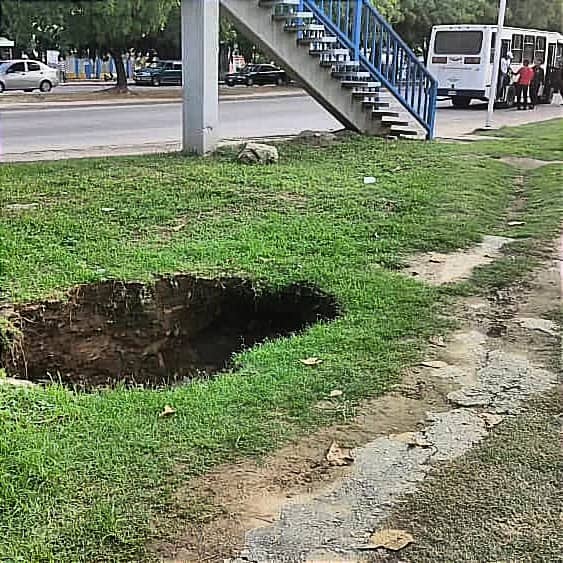 El equipo de Gestión de Riesgo de Protección Civil y Administración de Desastres del municipio Santiago Mariño, luego de inspeccionar y analizar el tramo que corresponde a la zona peatonal ubicada a unos 4.66 mtrs. de la pasarela de La Julia de la avenida Intercomunal Santiago Mariño, procedió a colocar cinta de seguridad restrictiva, debido a una abertura de 2.43 mtrs. de ancho X 1.72 mtrs. de largo y 1.31 mtrs. de profundidad causada por el socavamiento de la tierra.