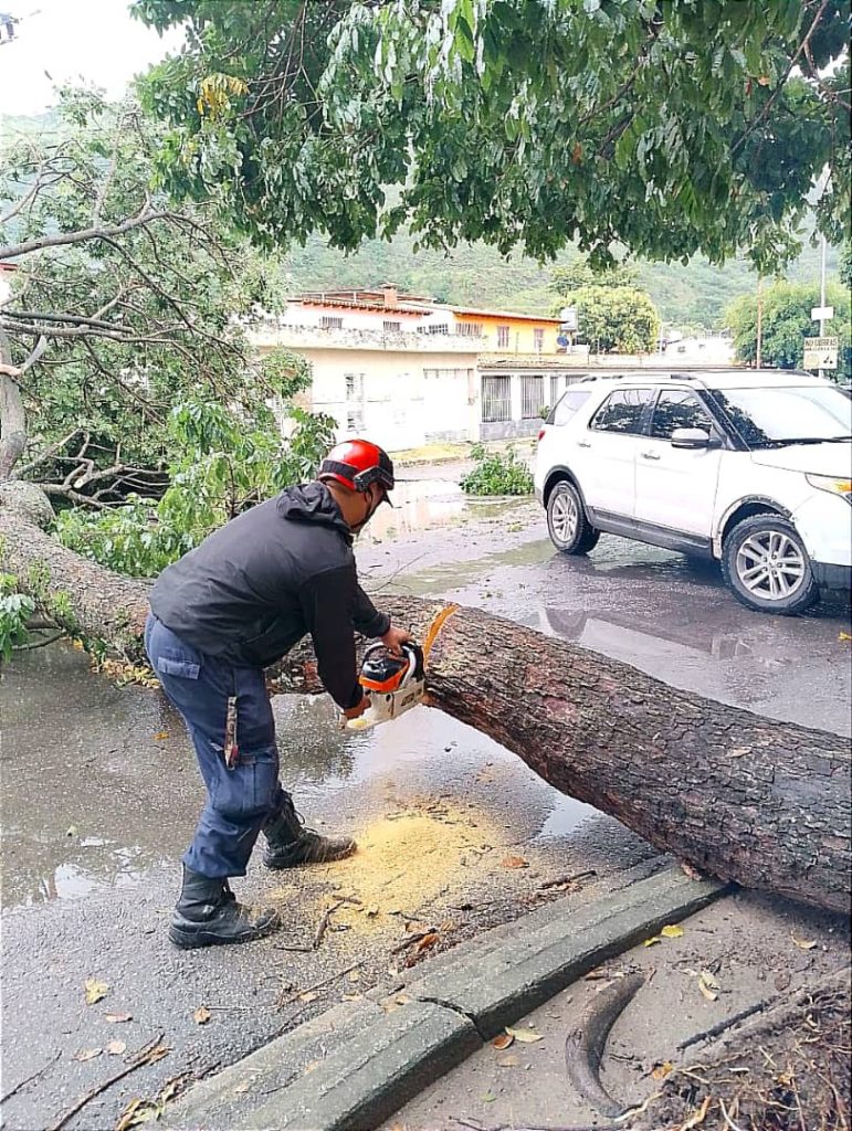 En horas del mediodía de este martes 17 de septiembre el personal de Protección Civil y Administración de Desastre del municipio Santiago Mariño realizó labores de poda, tala y retiro de un árbol Jatropha Curcas, comúnmente llamado (Piñón), el cual se desplomó de raíz en plena avenida principal de Valle Fresco de Turmero, debido al fuerte aguacero que cayó está mañana en la localidad.