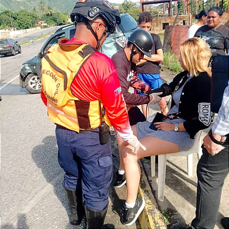 Al sitio llegó el esposo de la dama muy preocupado, el cual decide trasladarla en un vehículo particular a un centro asistencial, a fin de ser tratada por los profesionales de la salud. También, se apersonó una comisión de Policía Nacional Bolivariana adscrita al servicio de Tránsito, para realizar el peritaje del acontecimiento.