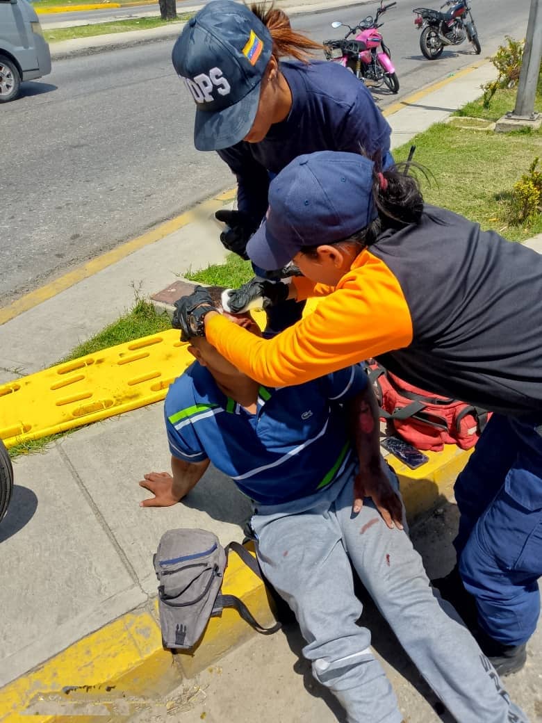 El primer incidente se reportó vía telefónica a la altura de La Julia, diagonal al Colegio de Abogados y la entrada de la Ferretería KSA Home Center C.A. Una comisión de Protección Civil despachó su unidad multipropósito y encontró a dos ciudadanos que, tras ser impactados por un automóvil mientras circulaban en motocicleta, presentaban laceraciones, quemaduras por fricción y escoriaciones. Ambos recibieron atención primaria y fueron trasladados al Centro de Diagnóstico Integral Samán de Güere «Ernesto Che Guevara de la Serna».