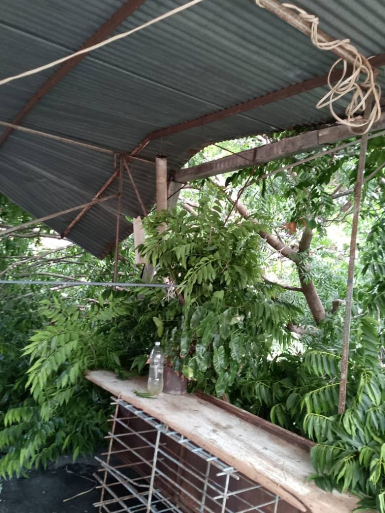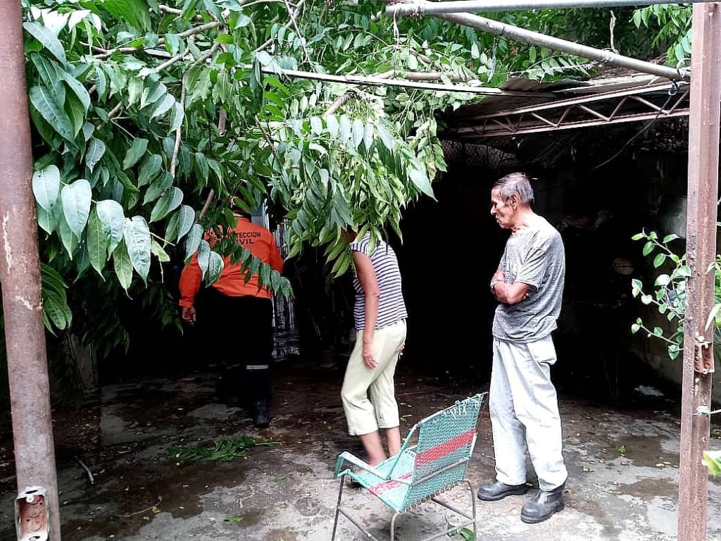 Al llegar al sitio, el equipo fue recibido por la propietaria del inmueble, una ciudadana de 60 años de edad, quien informó que el árbol caído no solo afectó un anexo de su propiedad, sino también la vivienda de una vecina, igualmente adulta mayor.