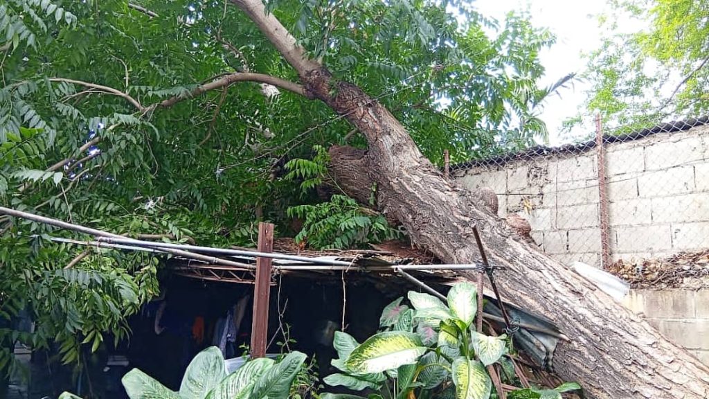 Al llegar al sitio, el equipo fue recibido por la propietaria del inmueble, una ciudadana de 60 años de edad, quien informó que el árbol caído no solo afectó un anexo de su propiedad, sino también la vivienda de una vecina, igualmente adulta mayor.