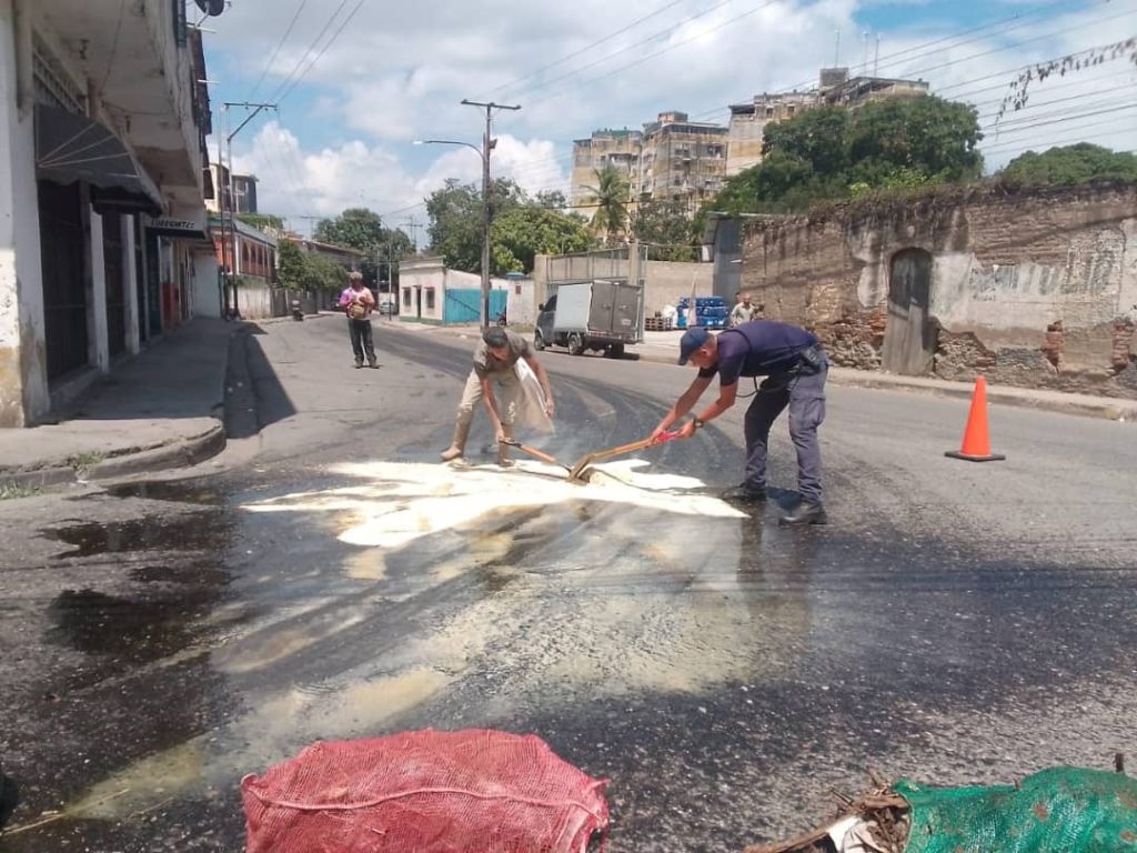 Entre las intervenciones más recientes, destaca la realizada en La Aduana, específicamente en la calle Girardot con Bermúdez, donde se reportó un derrame de manteca. Nuestros funcionarios actuaron de inmediato, implementando las acciones correspondientes para neutralizar el riesgo. Se utilizó una combinación de harina de maíz y arena a lo largo de aproximadamente 80 metros, logrando contener y limpiar la sustancia. Es importante resaltar el apoyo y la colaboración de los trabajadores de alimentos para animales, quienes aportaron la arena de maíz utilizada en esta operación.