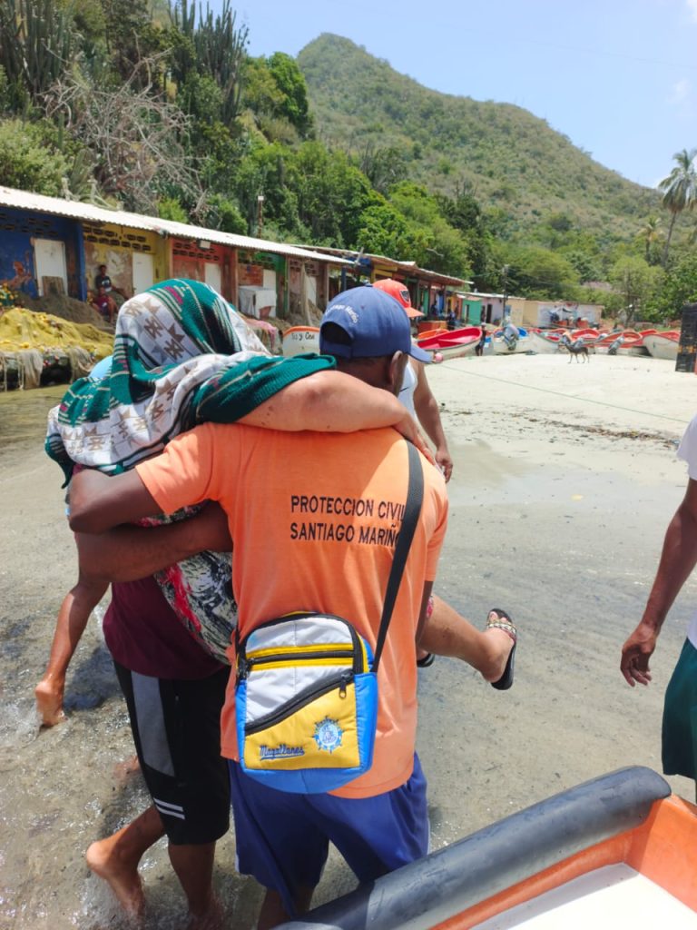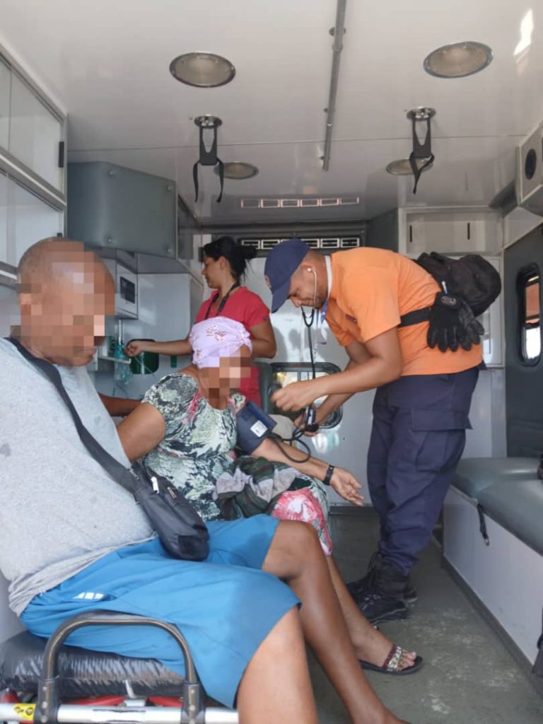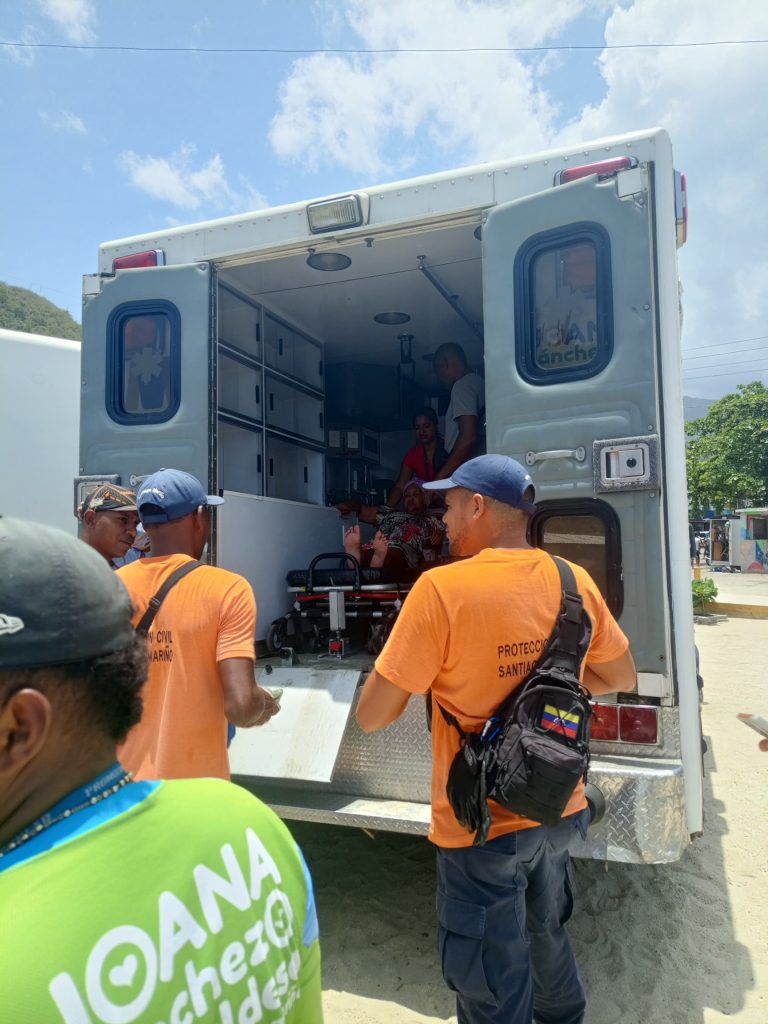 La adulta mayor, quien presentaba cifras tensionales de 170/100mmhg, fue referida al Cardiológico de Maracay para la realización de estudios especializados. El operativo de traslado comenzó en la calle San Juan de Chuao, donde el equipo de Protección Civil utilizó una unidad náutica para mover a la paciente y a sus hijos.