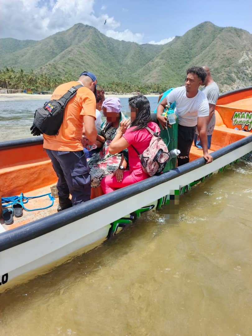 La adulta mayor, quien presentaba cifras tensionales de 170/100mmhg, fue referida al Cardiológico de Maracay para la realización de estudios especializados. El operativo de traslado comenzó en la calle San Juan de Chuao, donde el equipo de Protección Civil utilizó una unidad náutica para mover a la paciente y a sus hijos.